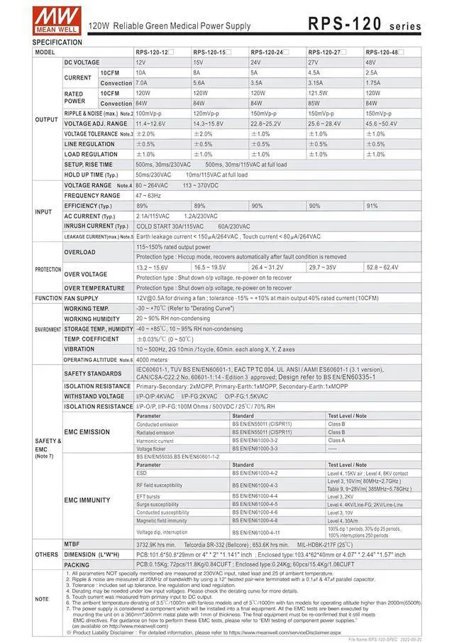 Medical safety approved (2 x MOPP) according to ANSI/AAMI ES60601-1 and lEC/BS EN/EN60601-1