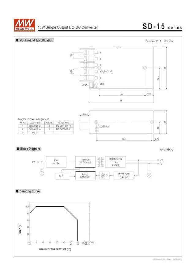 Mean Well SD-15C-5 15W Single Output DC-DC Converter 5V/3A