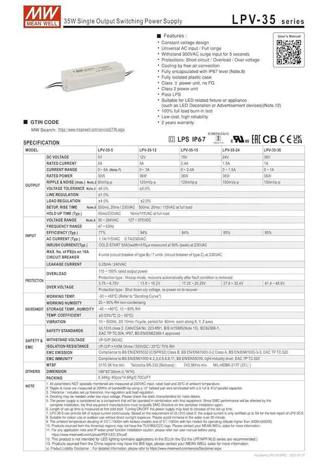 Protections: Short circuit / Overload / Over voltage