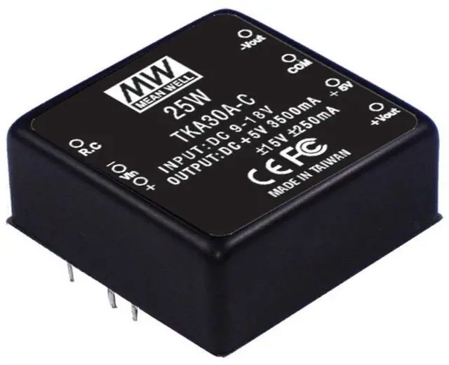 2"x2" case Dual in line package (DIP) I/O isolation: 1000VDC; 3000VDC option (SKE/DKE15) Protections: Short circuit / Overload Cooling by free air convection