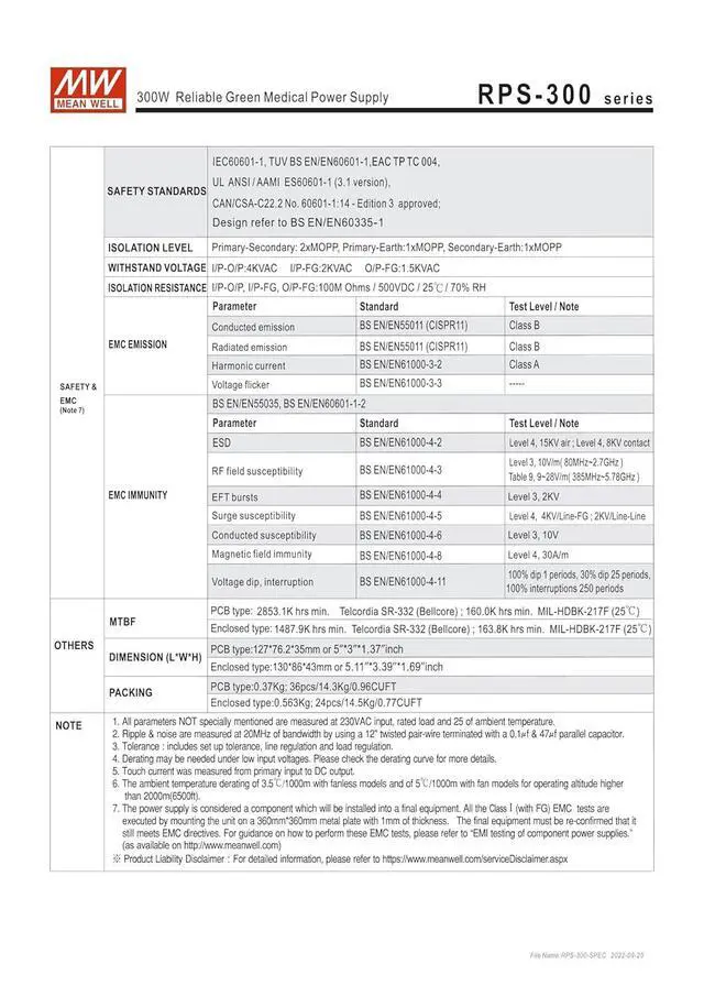 Medical safety approved (2 x MOPP) according to ANSI/AAMIES60601-1 and IEC/BS EN/EN60601-1