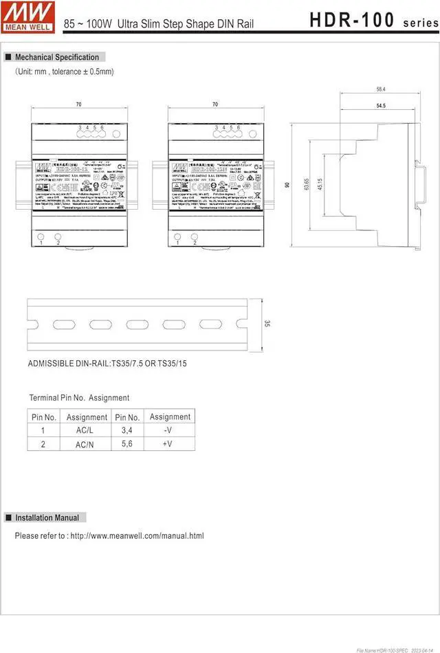 DIN rail TS-35/7.5 or 15 mountable