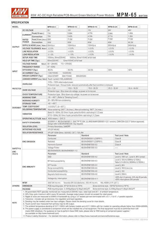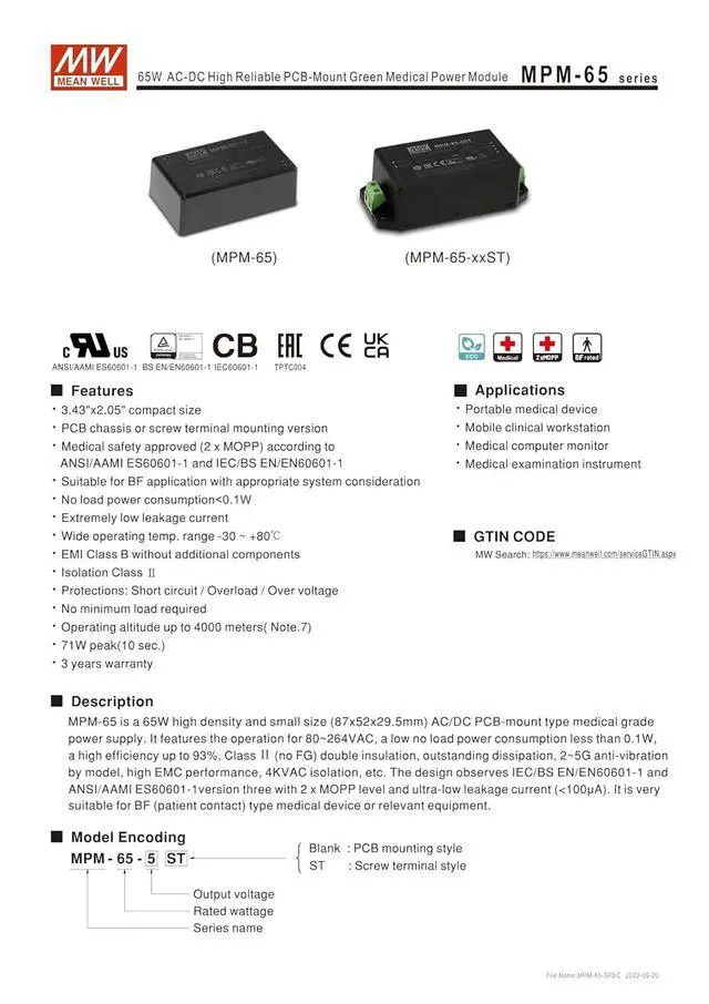 Medical safety approved(2 x MOPP) according to ANSI/AAMI ES60601-1 and lEC/BS EN/EN60601-1
