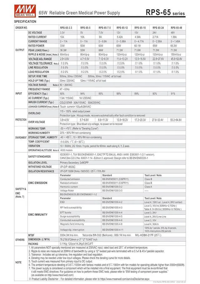 Medical safety approved (2 x MOPP) according to ANSI/AAMI ES60601-1 and lEC/BS EN/EN60601-1