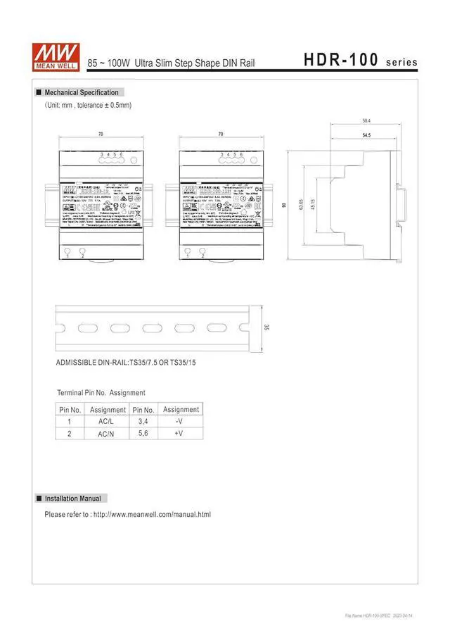 DIN rail TS-35/7.5 or 15 mountable