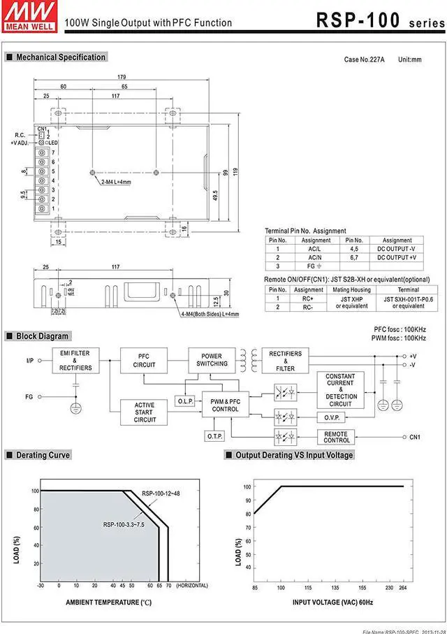 Primary Output Voltage (VDC): 48 Output Current (Amps): 2. 1 Maximum Output Power (Watts): 100. 8 Input Voltage (VAC): 85 to 264 Input Frequency (Hz): 47 to 63