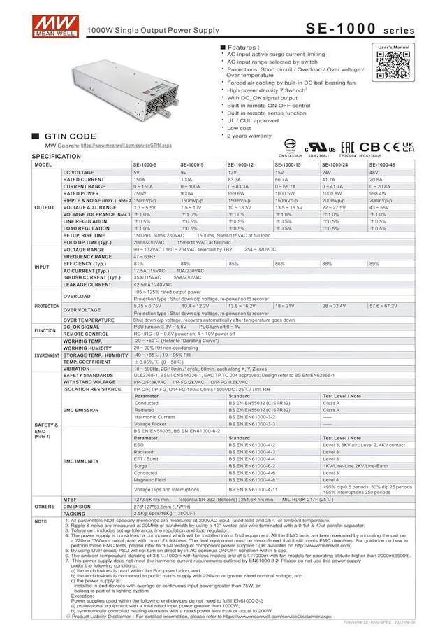 Protections: Short circuit / Overload / Over voltage /Over temperature