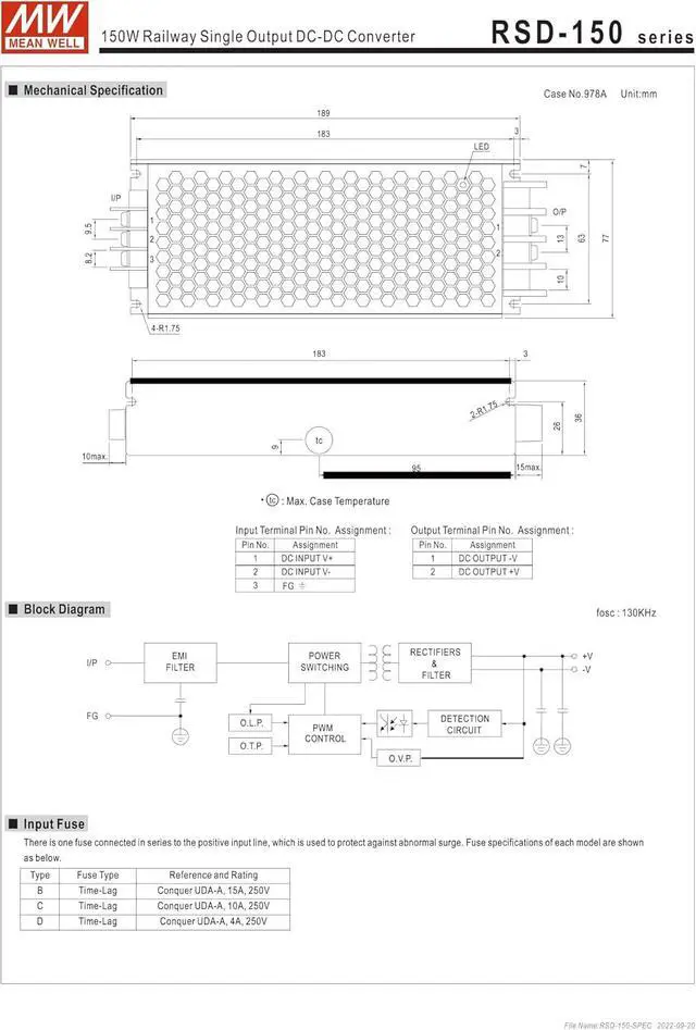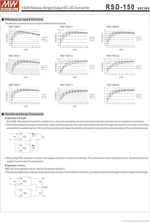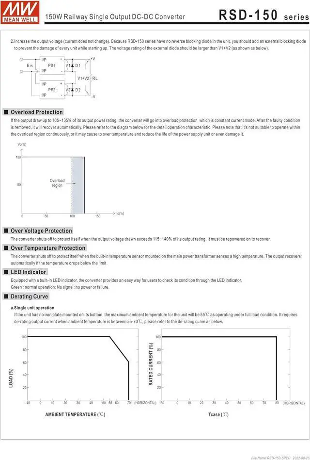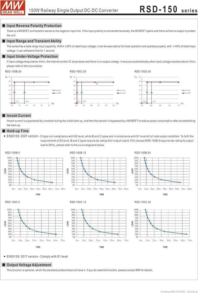 Mean Well RSD-150D-24 151.2W Railway Single Output DC-DC Converter 24V/6.3A
