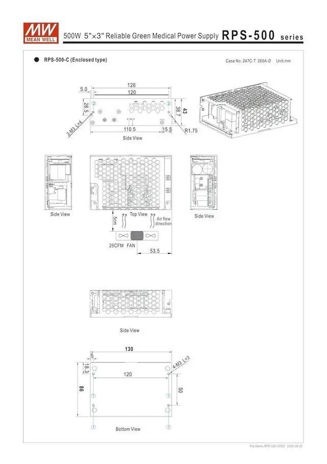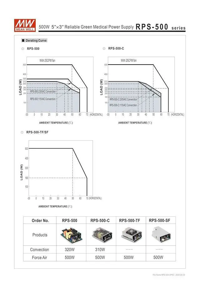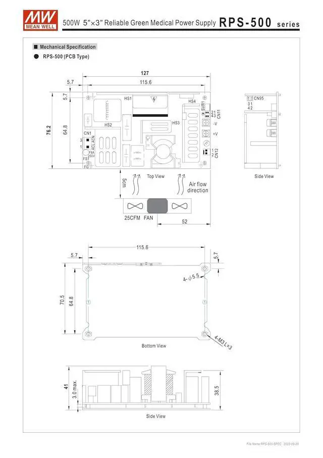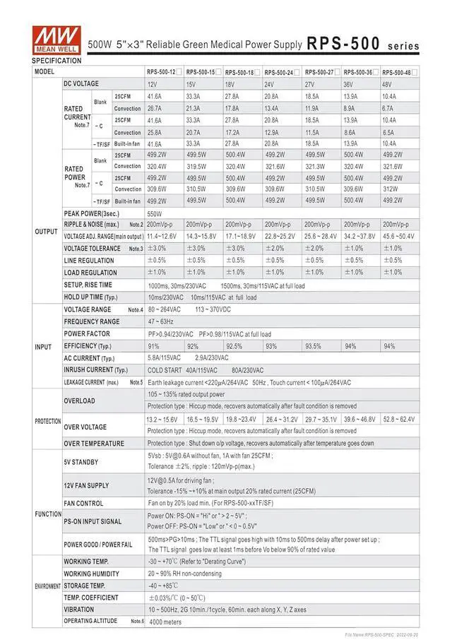 Mean Well RPS-500-48-C 499.2W Reliable Green Medical Power Supply RPS-500 48V 10.4A