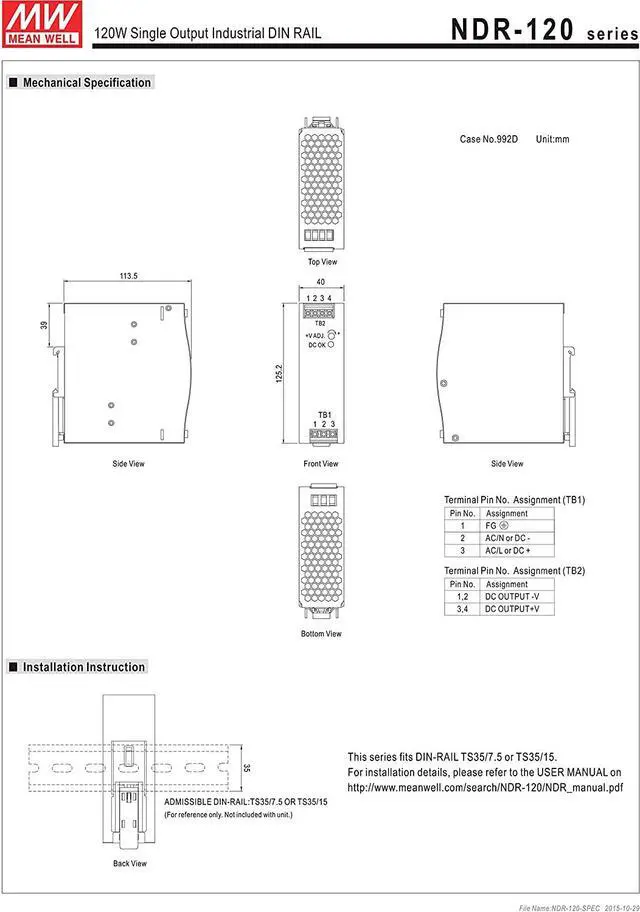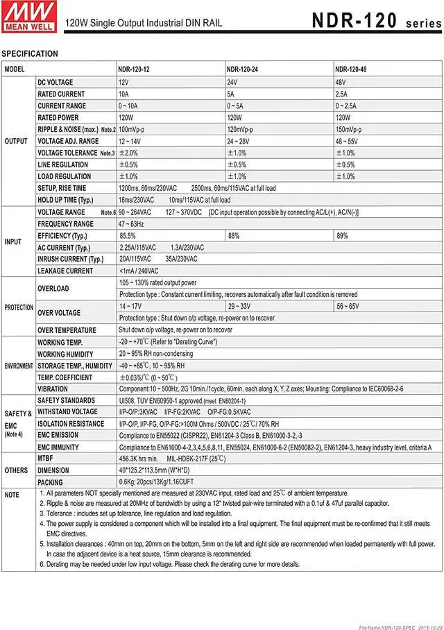 Output Voltage: 12V Approx. Wattage: 120W Protections: Short circuit / Overload / Over voltage / Over temperature Can be installed on DIN rail TS35 / 7.5 or 15 Warranty: 3 Years Warranty