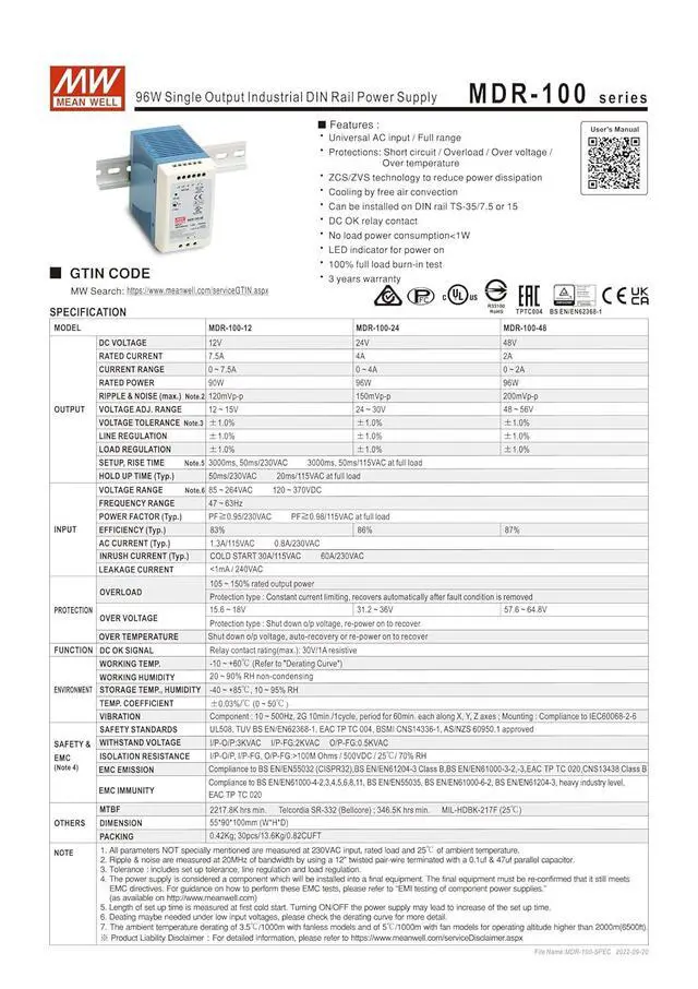 Protections: Short circuit / Overload / Over voltage / Over temperature