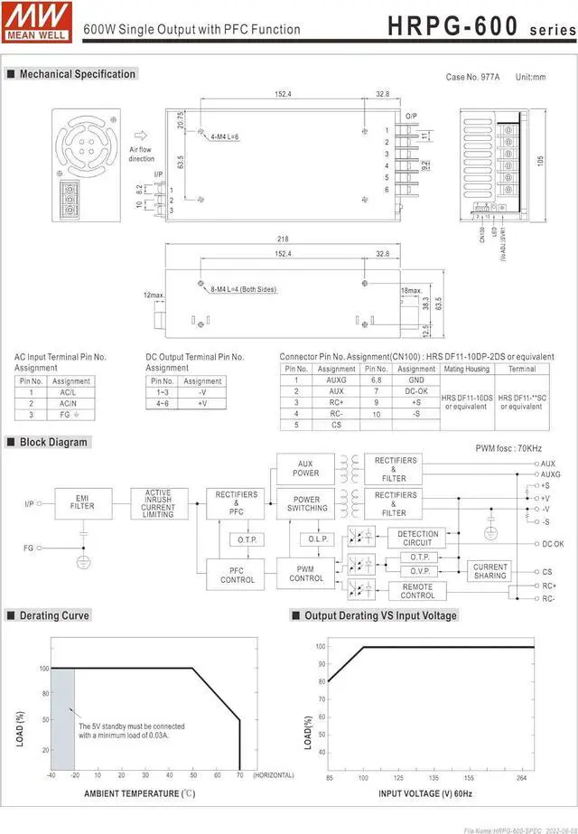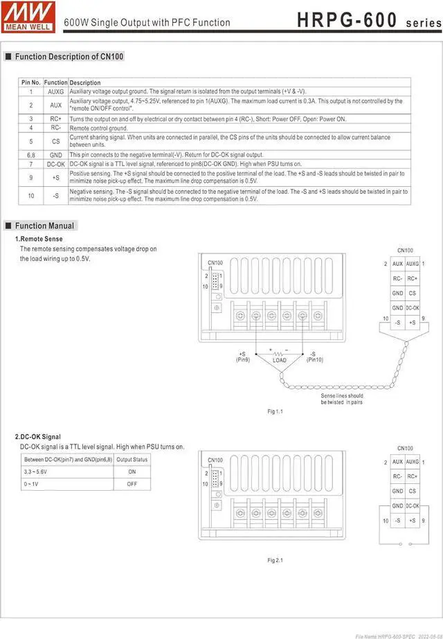 Built-in cooling fan ON-OFF controlBuilt-in DC OK signalBuilt-in remote ON-OFF controlBuilt-in remote sense function