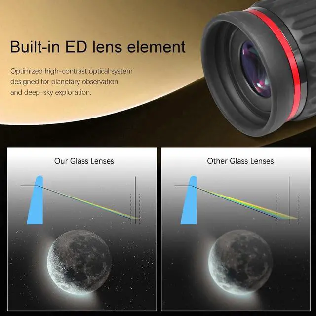 ED Element High-contrast Optics: The first time you observe an object through one of these eyepieces; you will almost certainly be struck by the brilliance clarity and depth of colour in the image