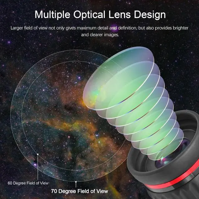 70 Degree Wide Angle: The Astromania gives a 70 degree field of view; which lets you see a huge swathe of the night sky; you can observe extended objects in their entirety; 70 degree field of view is a physiologically perfect match for the human eye