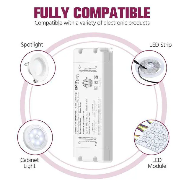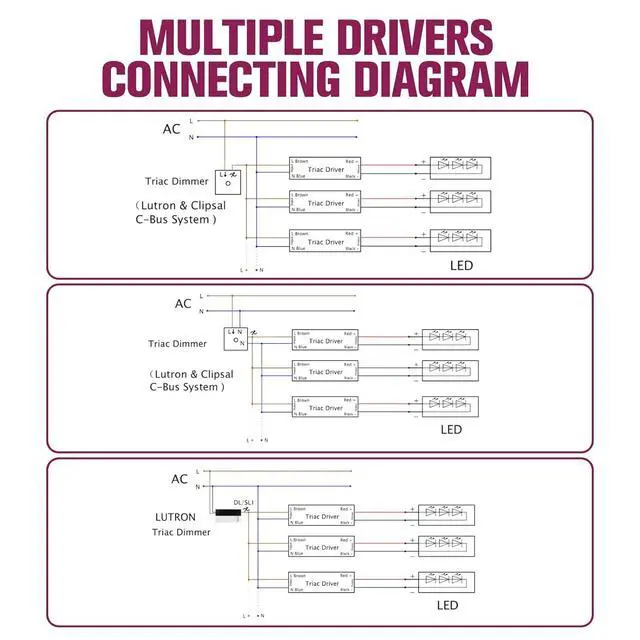 Triac Dimmable:Compatible with Forward phase, Magnetic low voltage, Triac Dimmers.For Lutron,Leviton,Legrand,Cooper AH and most Triac dimmer.