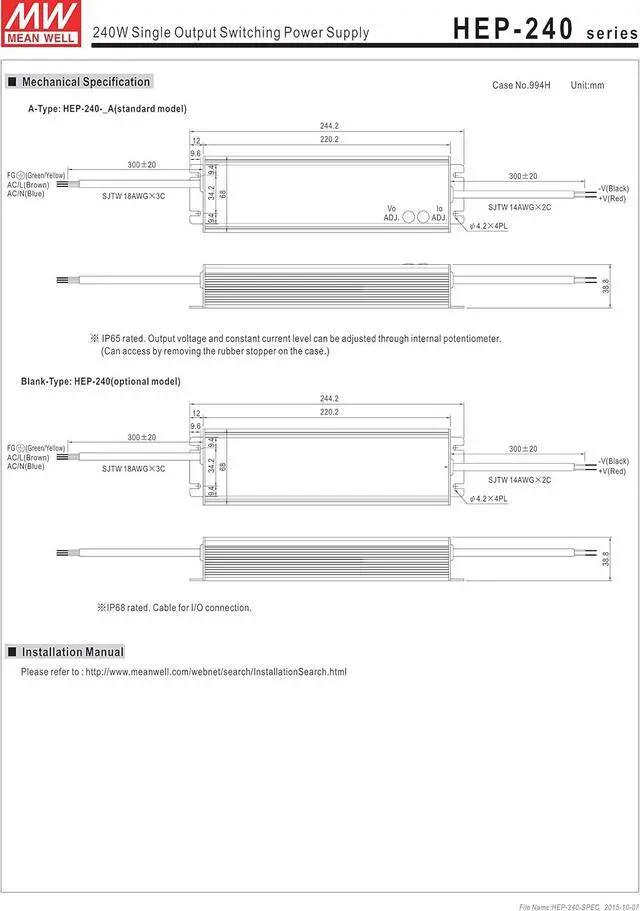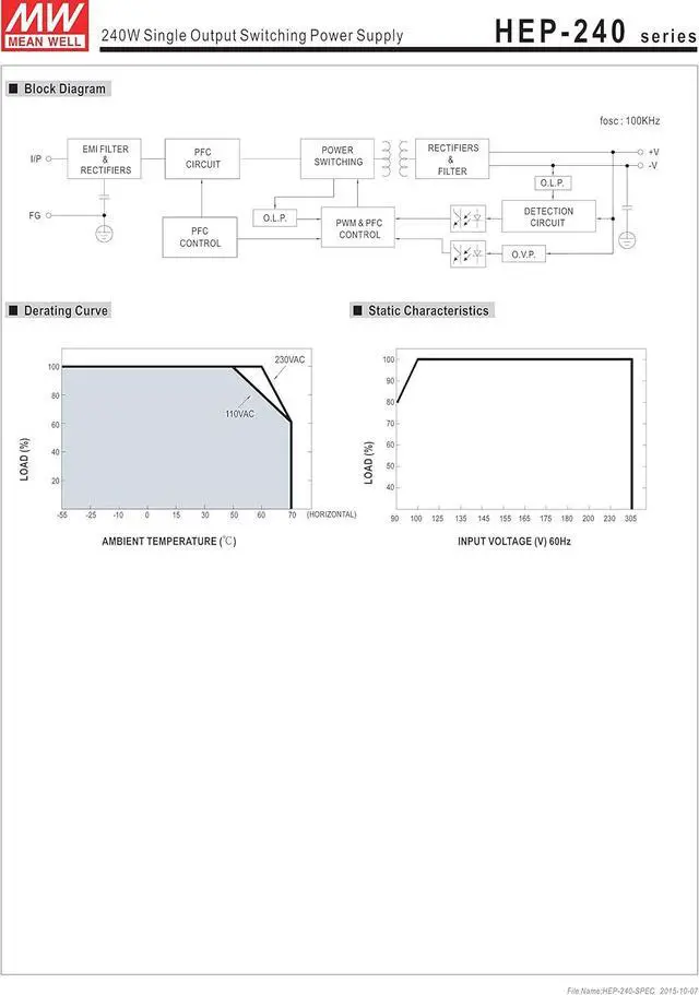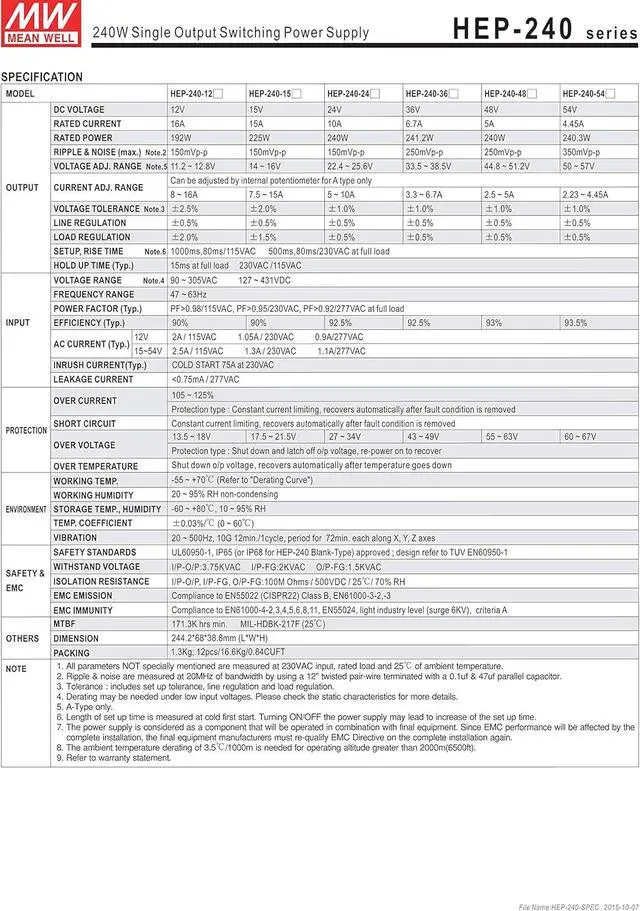MEAN WELL HEP-240-48A 48V 5A 240W Single Output Switching Power Supply Harsh Environment