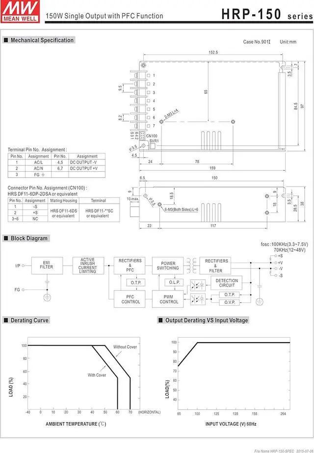 MW Mean Well HRP-150-12 12V 13A 150W Single Output with PFC Function Power Supply