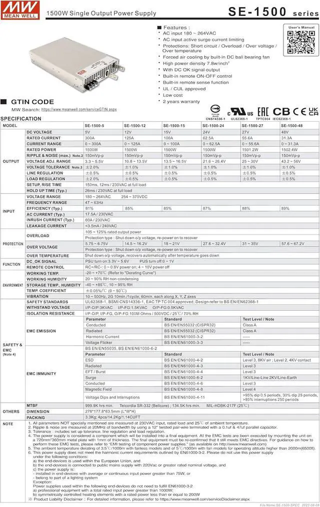 Protections: Short circuit / Overload / Over voltage /Over temperature