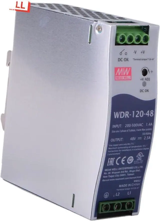 Robust 48V Industrial Power: Specifically designed for the rigorous demands of industrial control systems, this 48V, 2.5A power supply delivers a stable and reliable power solution. Its UL508 listing and compliance with BS EN/EN61000-6-2 (BS EN/EN50082-2) ensure robust performance even in harsh industrial environments, minimizing downtime and maximizing productivity.