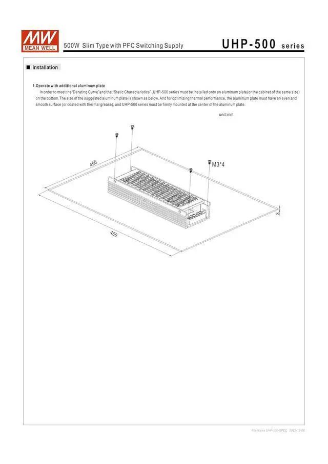 Mean Well UHP-500R-12 500.4W Slim Type with PFC Switching Supply 12V/41.7A