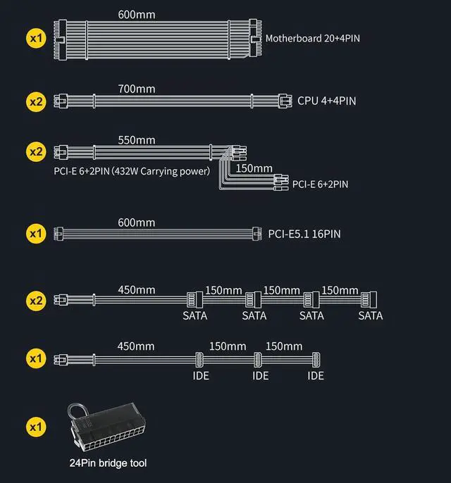 Fully Modular: Full module with flat white cables, improve airflow & strengthen cable management