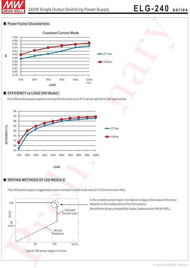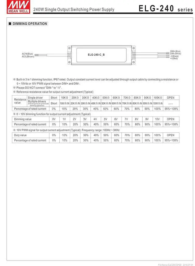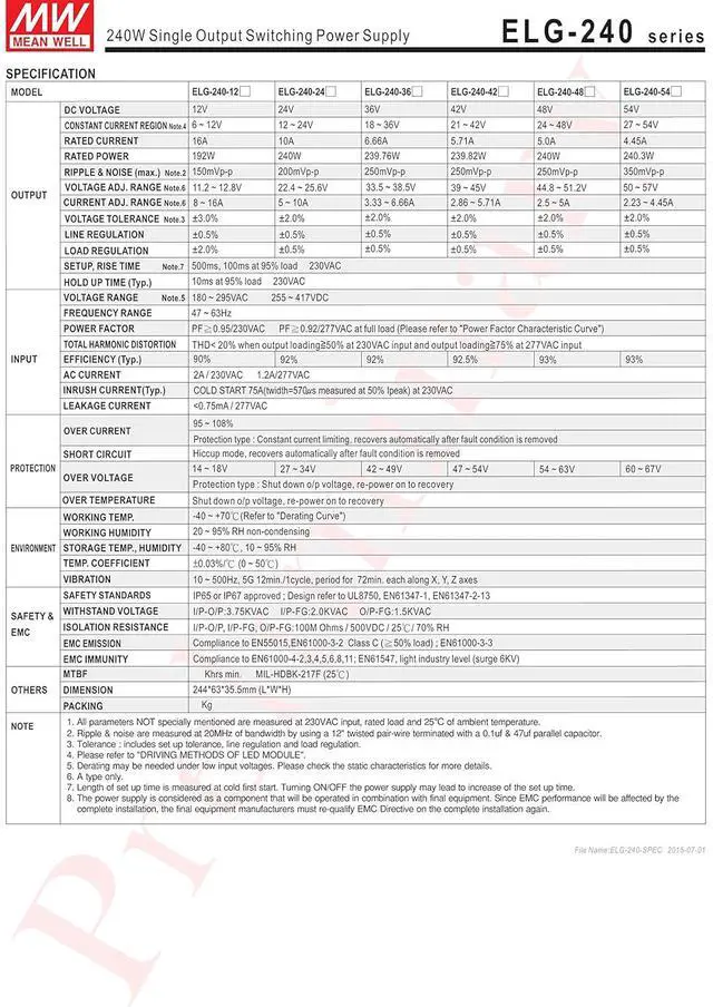 Full power at 65~100% max current (Constant Power) Protection Functions: OCP,SCP,OVP,OTP IP67 design for indoor or outdoor installations Function options: output adjustable via potentiometer; 3 in 1 dimming (dim-to-off) ; DALI dimming Stadium lighting