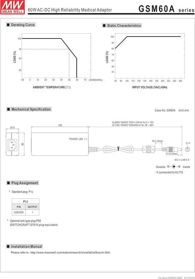 MW Mean Well Original GSM60A12-P1J 12V 5A 60W AC-DC Reliable Green Medical Adaptor