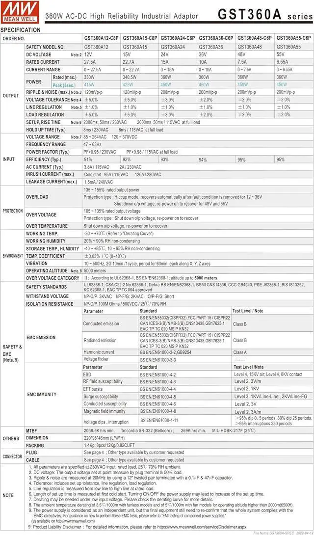Protections: Short circuit / Overload / Over voltage /Over temperature