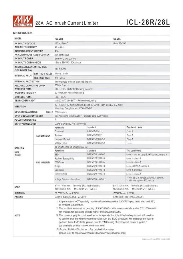 48A inrush limiting current, 28A continuous
