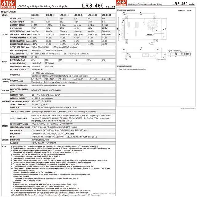 High Efficiency Operation: The DrapeMania LRS-450-12 achieves 90% efficiency, reducing energy waste and contributing to lower operating temperatures, which helps lower energy costs and improve system reliability.