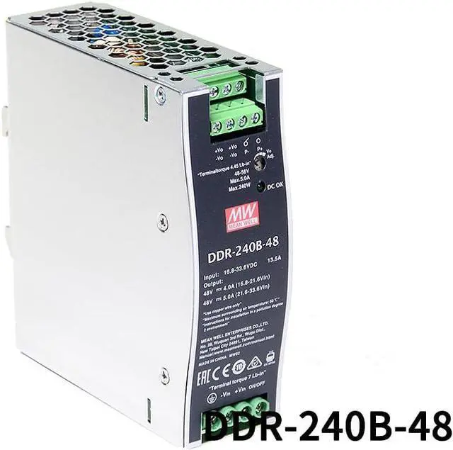Model DDR-240B-48 Input Range: 16.8-33.6Vdc, Output: 48Vdc 5A 240W