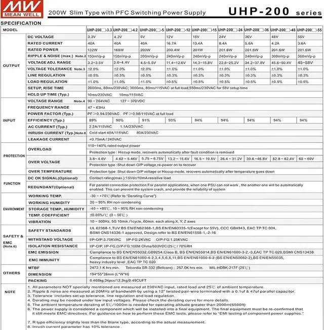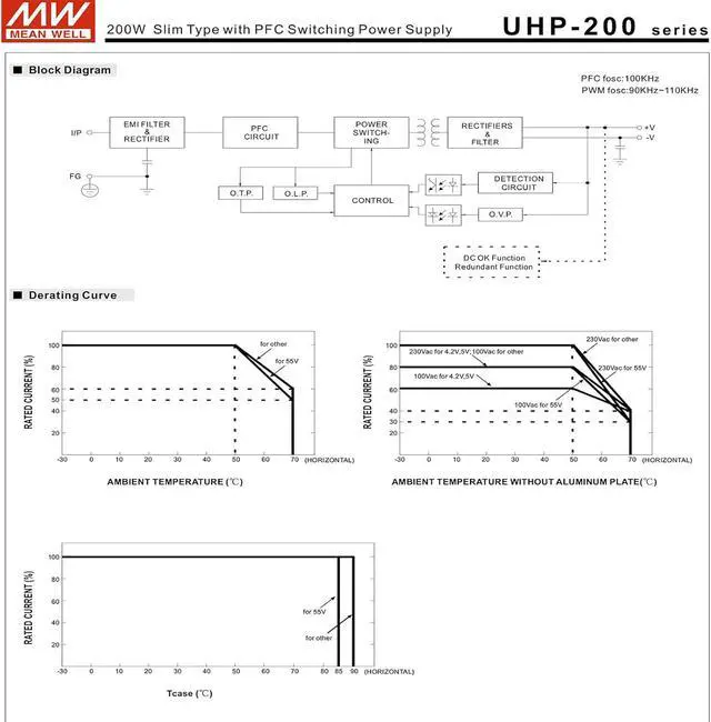 Mean Well 200W Slim Type with PFC Switching Power Supply Semi Modular Convert-A-Bench Power Supply Pc Variable Transformer (UHP-200R-12 12V/16.7A/200W/PFC Switching)