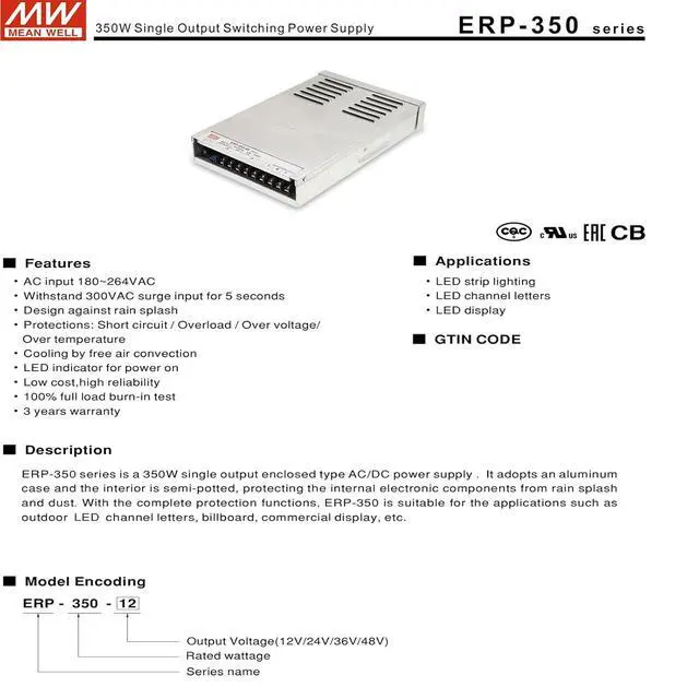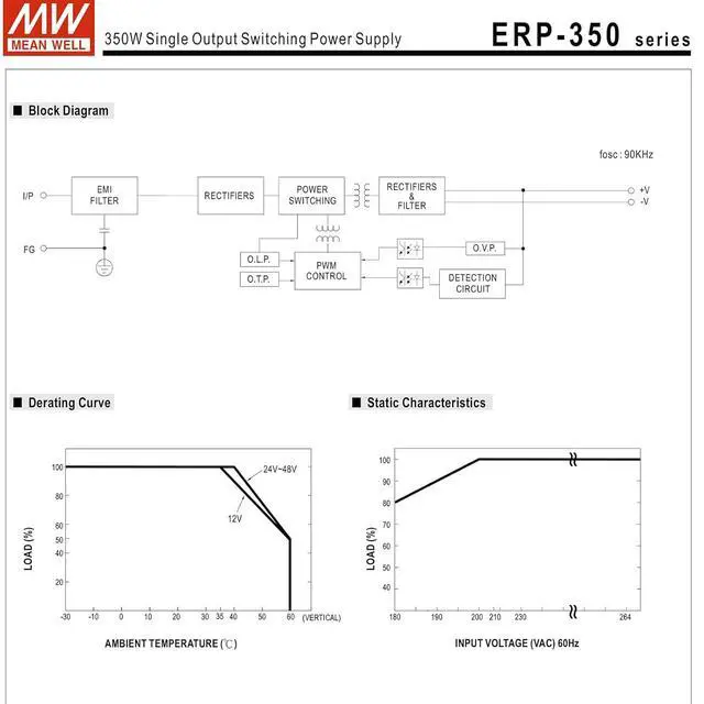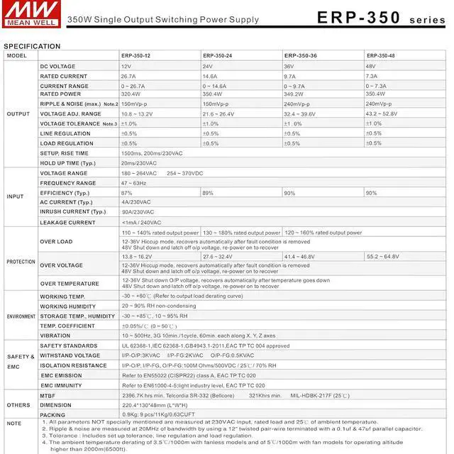 Mean Well 350W Single Output Switching Power Supply for Ham Radio Switching Amateur Radio Computer Power Supply 36V 9.7A (ERP-350-36 36V/9.7A/349.2W/Single Supply)
