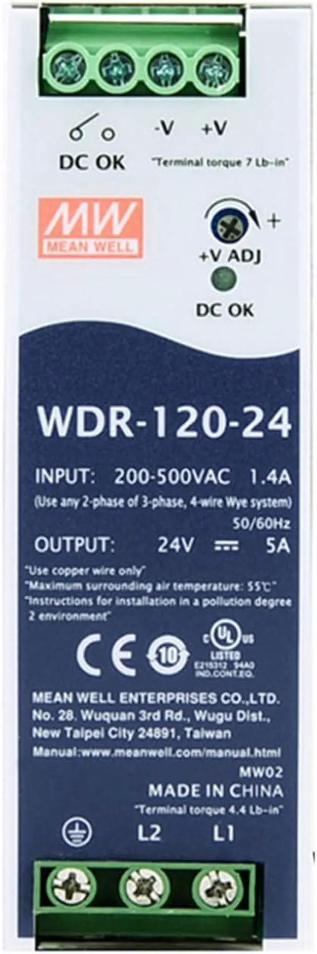 Safety First, Confidence Guaranteed: Built with comprehensive protection, the WDR-120-24 safeguards your valuable equipment. It's UL508, EAC TP TC 004, BIS IS13252(Part1) certified and meets IEC62368-1 standards, ensuring worry-free operation.