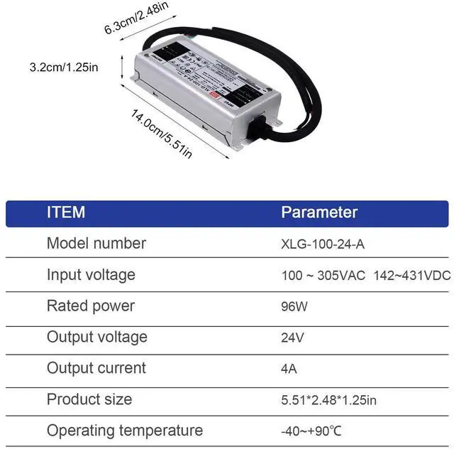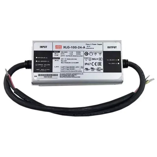 Robust Constant Power Design: Full 96W output across 70-100% load range, 24VDC 4A, ideal for powering high-brightness LEDs in industrial lighting.