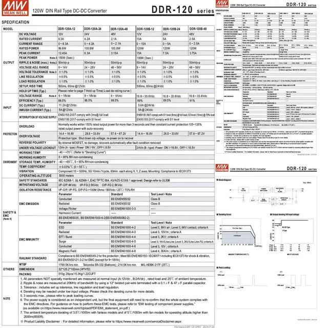 Reliable Operation in Harsh Environments: This DC-DC converter is built to withstand challenging conditions. Featuring a wide operating temperature range of -40°C to +85°C and compliance with EN50155 for railway applications, the DDR-120A-12 ensures consistent performance in harsh environments.