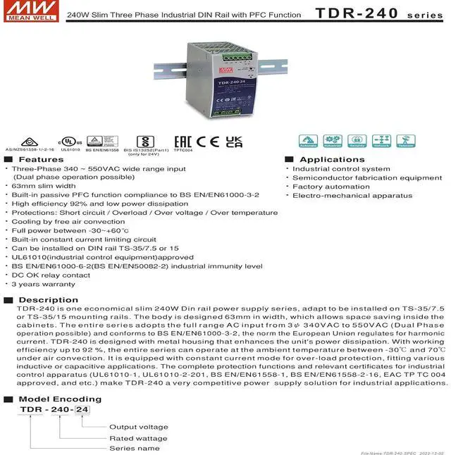 Three-Phase 340 ~ 550VAC wide range input (Dual phase operation possible)