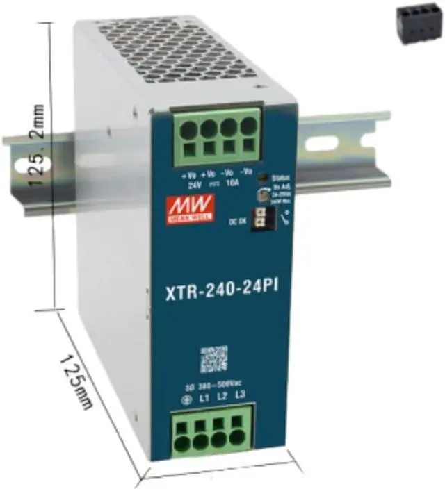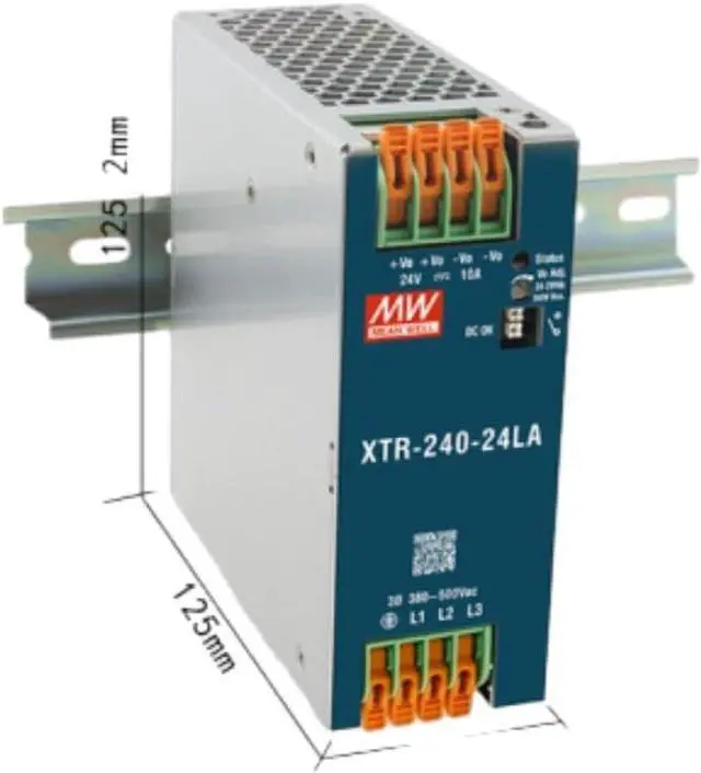 The power supply driver can be installed on TS-35/7.5 or 15-type rails, with a three-phase wide-range input of 320600 Vac, and supports occasional surge inputs of 600700 Vac for 1 second. (Terminal type: Lever-Actuated)