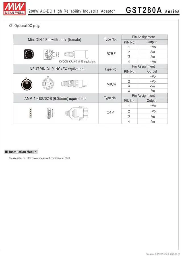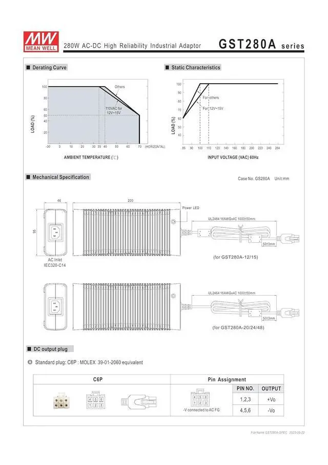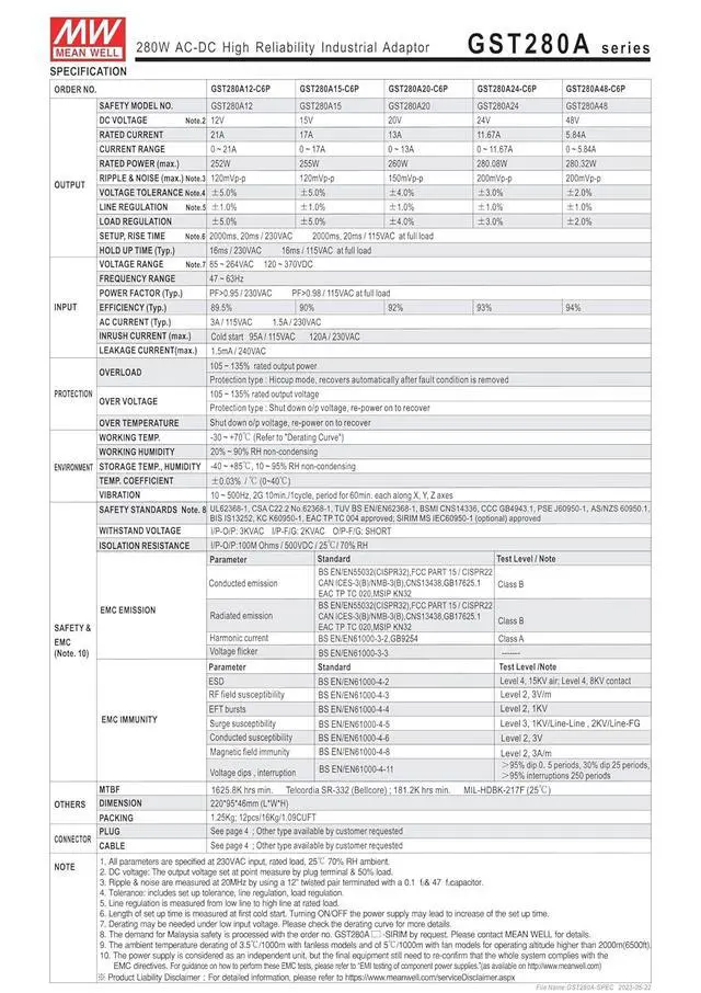 MEAN WELL GST280A48-C6P 280.32W AC-DC High Reliability Industrial Adaptor GST280A 48V 5.84A