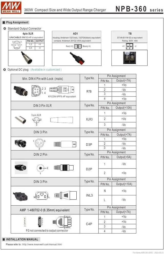 Protections: Short circuit / Over voltage /Over temperature / Battery reverse polarity protection