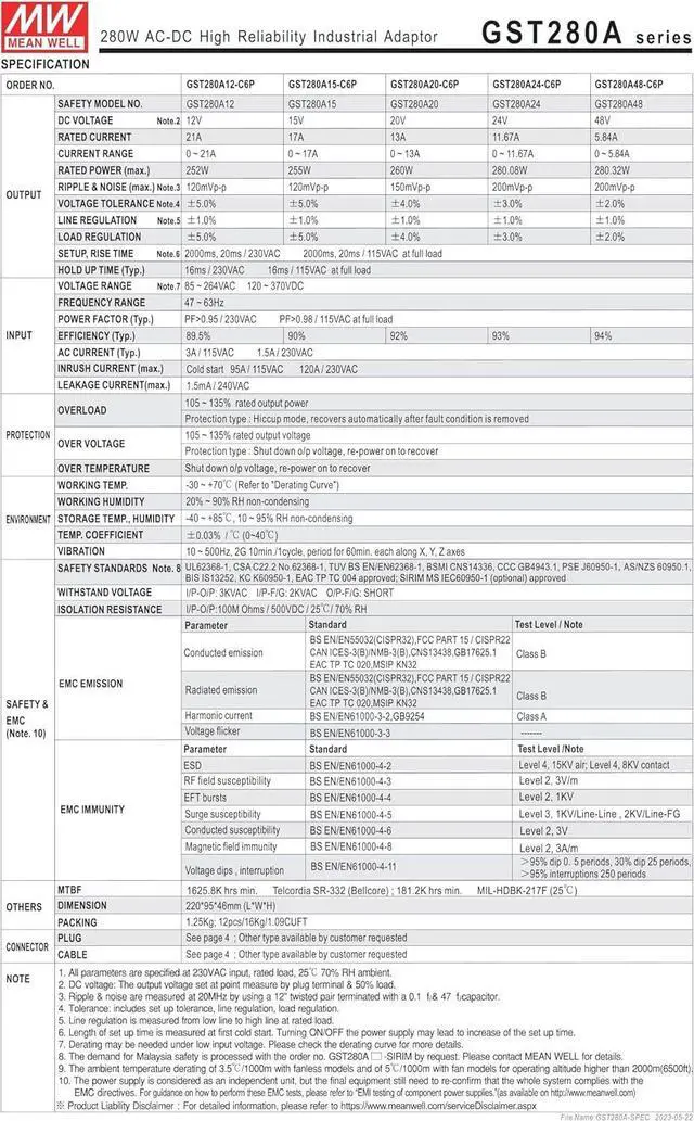 MEAN WELL GST280A15-C6P 255W AC-DC High Reliability Industrial Adaptor GST280A 15V 17A
