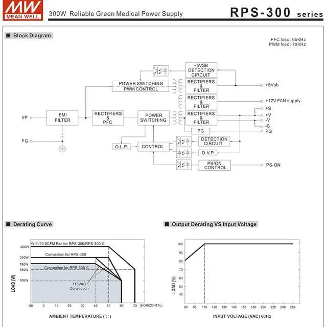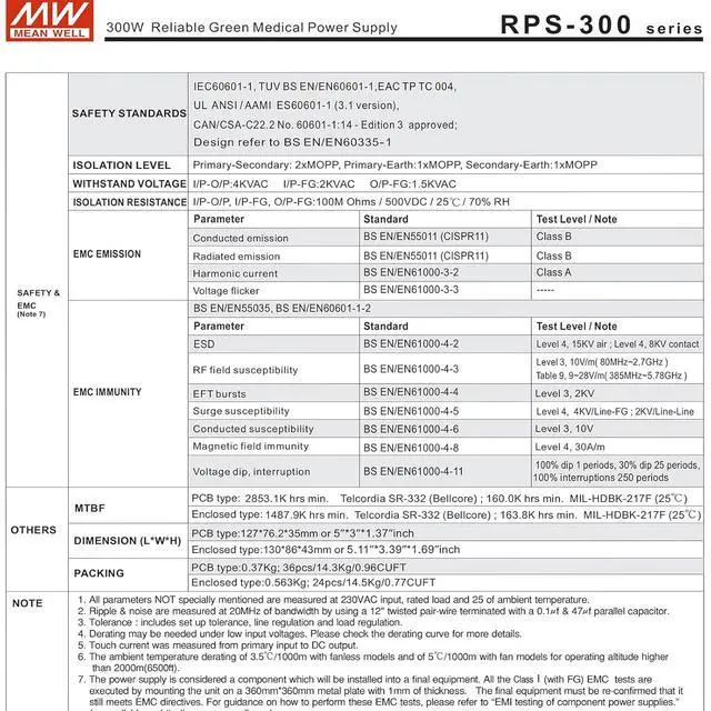 RPS-300 is a 300W highly reliable green PCB type medical power supply with a high power density on the 5 by 3 footprint.