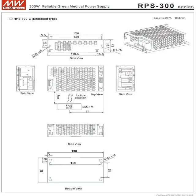 In addition, it conforms to international medical regulations (2*MOPP) and EMC BS EN/EN55011, perfectly fitting all kinds of BF rated patient contact medical system equipment. RPS-300 series also offers the enclosed style model (RPS-300-C).