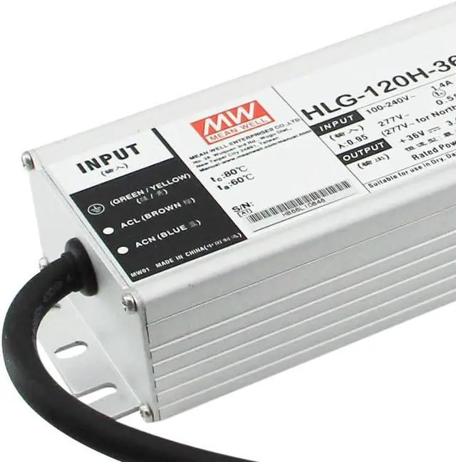 Description : HLG-120H series is a 120WAC/DC LED driver featuring the dual mode constant voltage and constant current output. HLG-120H operates from 90~305VAC and offers models with different rated voltage ranging between 12Vand 54V. Thanks to the high efficiency up to 93.5%, with the fanless design, the entire series is able to operate for -40~+80 case temperature under free air convection. The design of metal housing and IP67/IP65 ingress protection level allows this series to fit both indoor and outdoor applications.HLG-120H is equipped with various function options, such as dimming methodologies, so as to provide the optimal design flexibility for LED lighting system.