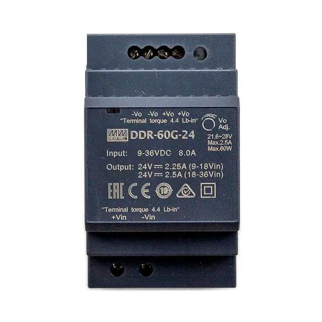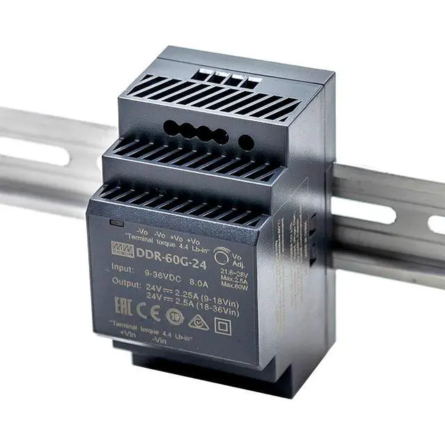 Reliable 60W Power Output: The TorqCali DDR-60G-24 DC-DC converter delivers a robust 60W output, making it well-suited for powering demanding industrial applications requiring a reliable 24V power source.