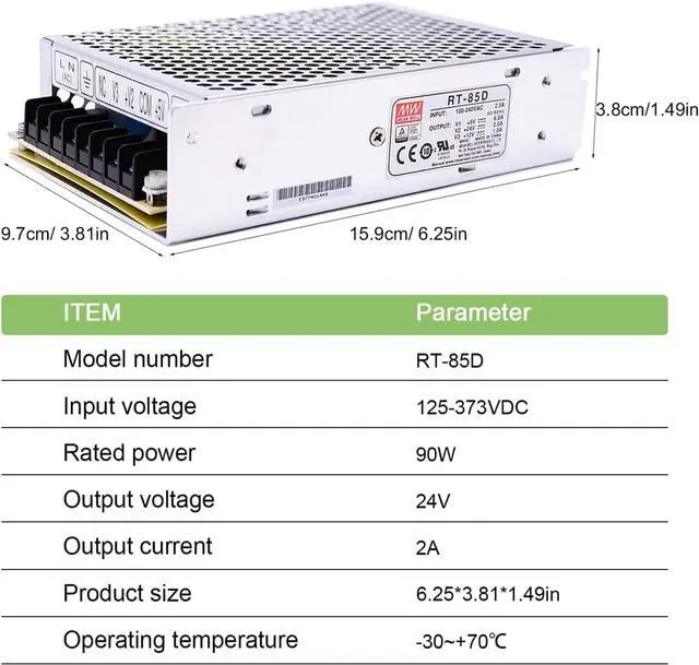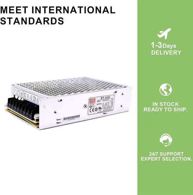 Wide Range of Applications: The RT-85D is ideal for industrial automation, LED lighting systems, telecommunications equipment, control and instrumentation systems, and any other application requiring multiple output voltages. It operates reliably in harsh environments with a wide operating temperature range of -25 to +70 and 5G vibration resistance.