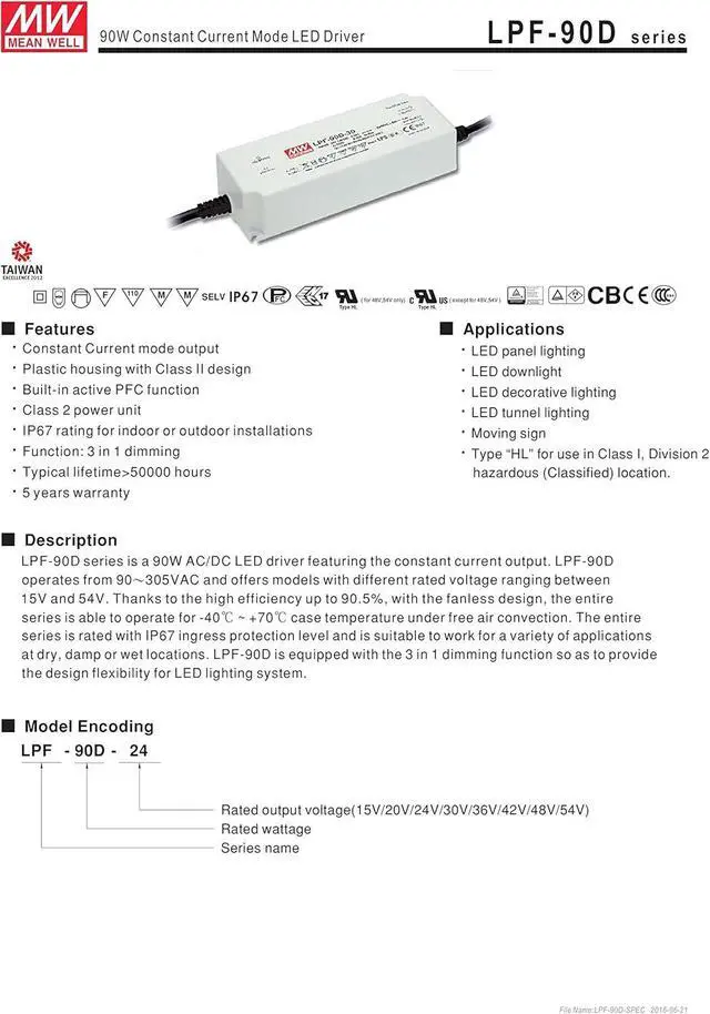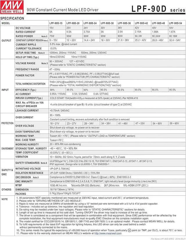 [PowerNex] Mean Well LPF-90D-48 48V 1.88A 90.24W Single Output LED Switching Power Supply with PFC