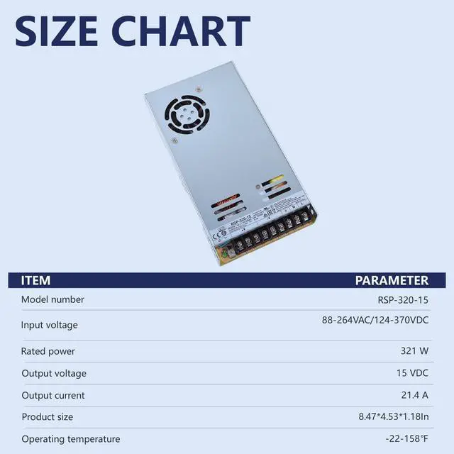 Versatile Industrial Applications: Ideal for industrial control systems, automation devices, test and measurement instruments, laser machinery, and RF equipment due to its stable 15V output.