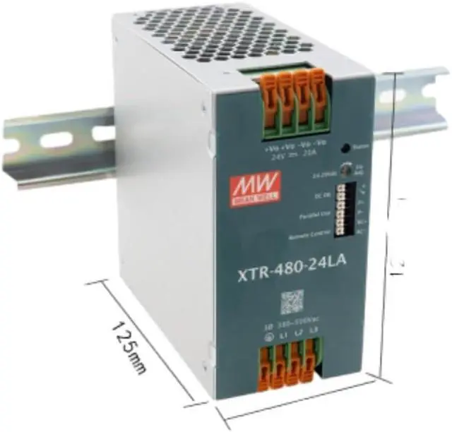 The power driver can be mounted on TS-35/7.5 or 15-type rails, with a three-phase wide-range input of 320600 Vac, and supports occasional surge inputs of 600700 Vac for 1 second. (Terminal type: Push-in, mounting bracket)