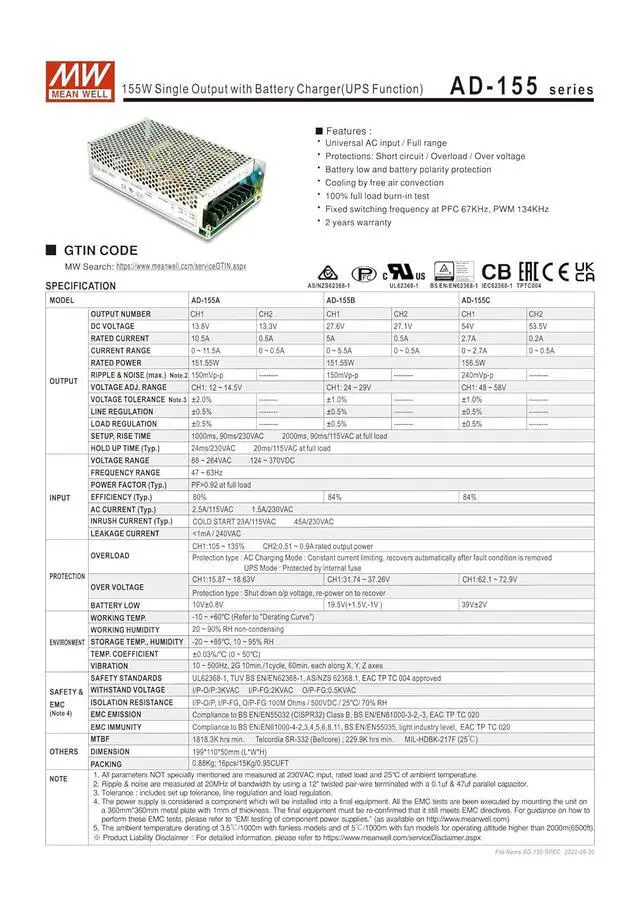 Universal AC input / Full range Protections: Short circuit / Overload / Over voltage Battery low and battery polarity protection Cooling by free air convection 100% full load burn-in test Fixed switching frequency at PFC 67KHz,PWM 134KHz